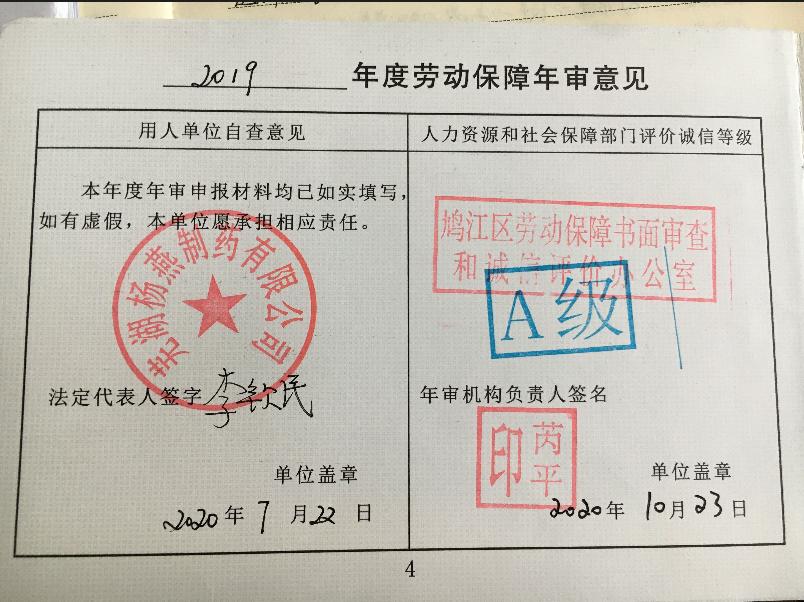 2020年10月,我司被蕪湖市鳩江區(qū)勞動(dòng)部門評(píng)為A級(jí)誠(chéng)信用人單位(最高級(jí)),這也是連續(xù)6年被評(píng)為A級(jí)誠(chéng)信用人單位。這得益于我司一直以來(lái)致力于為員工提供良好工作及發(fā)展平臺(tái),嚴(yán)格遵循國(guó)家勞動(dòng)法律法規(guī)及企業(yè)制定的合理化工作制度,全面實(shí)施人性化管理的成果。